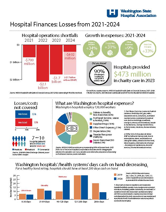 The Washington State Hospital Association (WSHA) is a nonprofit trade association helping hospitals care for their communities by providing advocacy, data analytics and clinical excellence services to keep patients healthy and ensure they can get care.